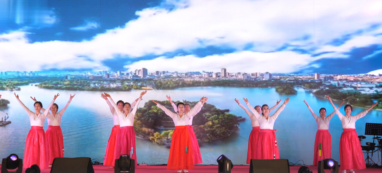 鑫城社区日升幼儿园与鸿运艺术团带来的《龙腾醒狮、精忠报国》率先登场,雄狮跃动间、铿锵鼓点里尽显精气神;绿地社区闫廷玉一曲《西部放歌》,唱出各族儿女共同守护的祖国辽阔;康宁社区朝鲜族舞蹈队《红太阳照边疆》灵动翩跹,勾勒出民族团结的美好图景;同城社区《五星红旗》、李石社区《东方红》等节目,让各族群众在经典旋律中凝聚 “中华民族一家亲” 共识 —— 每段表演,都是 “李石人” 以文艺为桥、共诉家国情怀的生动注脚。