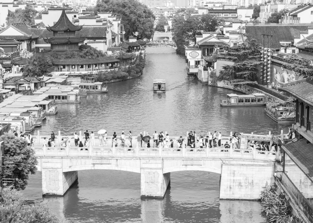 图:10月5日,人们在南京夫子庙景区游玩(无人机照片)。