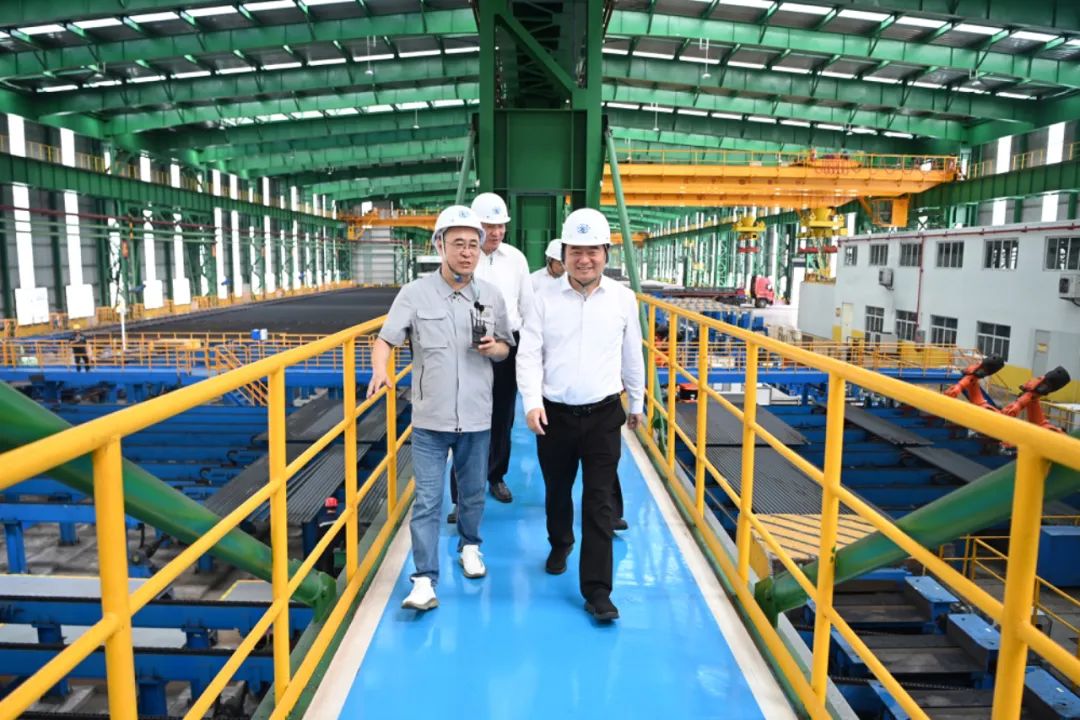 省委书记、省人大常委会主任郝鹏在鞍山紫竹轻型特钢有限公司沿生产线参观考察。