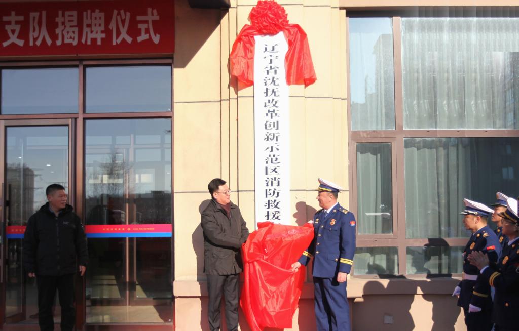 12月29日,沈抚改革创新示范区消防救援支队举行挂牌仪式,标志着示范区消防救援事业迈入了一个全新的发展阶段,为守护区域安全稳定筑牢了坚实防线。省消防救援总队党委书记、政治委员王星,沈抚示范区党工委副书记、管委会主任李宏德共同为“辽宁省沈抚改革创新示范区消防救援支队”揭牌,示范区党工委委员、管委会副主任苏伟致辞。