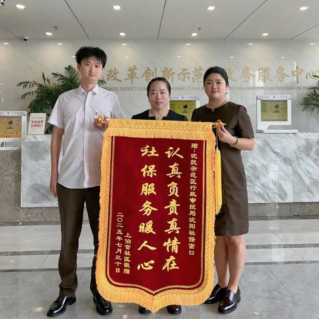 近日,沈抚示范区政务服务中心沈阳社保窗口收到了一面来自上伯官社区居民送来的锦旗,锦旗背后凝聚着示范区窗口工作人员用心用情服务群众的暖心故事。
