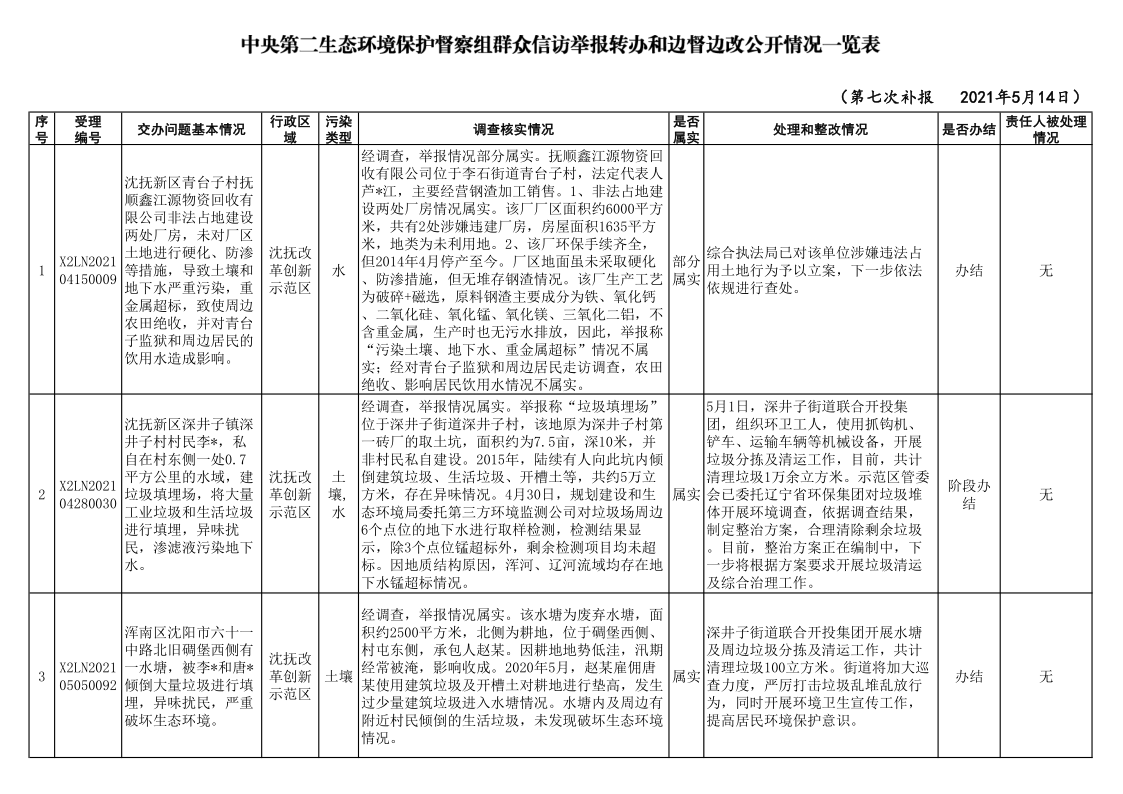 第7次补报案件转办和边督边改情况公示表